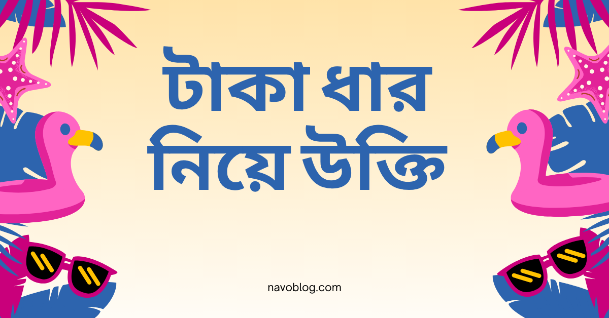 এমন অনেক বিখ্যাত উক্তি আছে যা মানুষকে টাকা ধার নেয়ার ব্যাপারে সতর্ক থাকতে উৎসাহিত করে। আবার কিছু উক্তি এমন আছে যা টাকা ধার নিয়েও সাহস, সততা ও আত্মমর্যাদার সাথে চলার উপদেশ দেয়। আজকের এই লেখায় আমরা বাছাইকৃত সেরা টাকা ধার নিয়ে উক্তি তুলে ধরবো, যেগুলো ফেসবুক ক্যাপশন বা নিজস্ব চিন্তার খোরাক হিসেবে কাজে লাগবে।