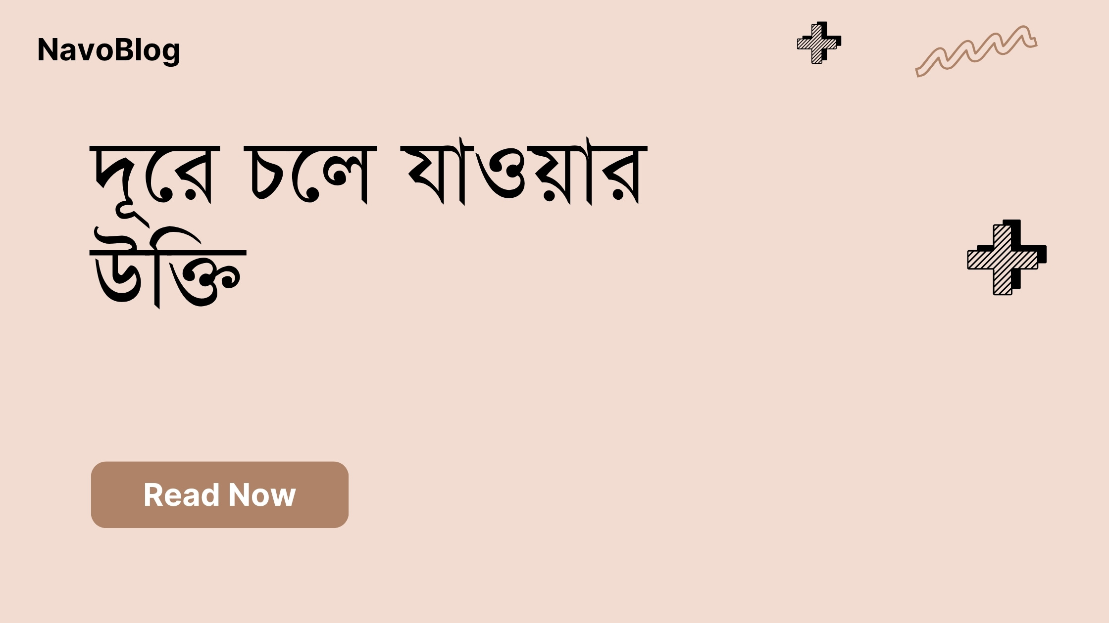 দূরে চলে যাওয়ার উক্তি জীবনের গুরুত্বপূর্ণ বাস্তবতাকে প্রতিফলিত করে। কখনো কখনো জীবন আমাদের এমন পরিস্থিতিতে ফেলে যেখানে দূরে চলে যাওয়া প্রয়োজন। দূরে চলে যাওয়ার উক্তি আমাদের শেখায়, কখন সম্পর্ক, পরিস্থিতি বা মানুষ থেকে নিজেকে আলাদা করা প্রয়োজন। এই ধরনের দূরে চলে যাওয়ার উক্তি শুধুই ব্যক্তিগত জীবনের জন্য নয়, এটি আমাদের মানসিক শক্তি ও আত্মবিশ্বাস বাড়াতে সাহায্য করে। দূরে চলে যাওয়ার উক্তি ফেসবুক পোস্ট বা সোশ্যাল মিডিয়ার ক্যাপশন হিসেবেও খুবই প্রাসঙ্গিক, কারণ এগুলো সংক্ষেপে গভীর বার্তা দেয়।