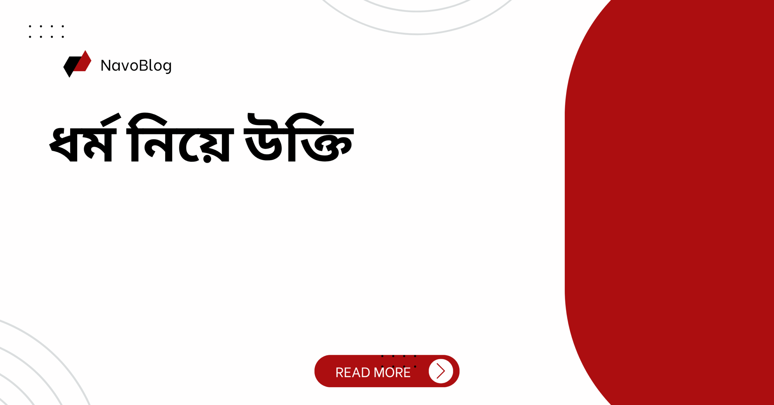 ধর্ম নিয়ে উক্তি আমাদের জীবনের সবচেয়ে মূল্যবান দিকগুলোকে স্পর্শ করে, যা ব্যক্তিগত ও সামাজিক জীবনে শক্তি ও দিকনির্দেশনা দেয়। ধর্ম নিয়ে উক্তি আমাদের শেখায় কীভাবে সত্য, ন্যায় ও করুণা নিয়ে জীবনযাপন করতে হয়। ধর্ম নিয়ে উক্তি আমাদের হৃদয়কে প্রশান্তি দেয় এবং মনকে আলোকিত করে। ধর্ম নিয়ে উক্তি পড়ে আমরা জীবনের চ্যালেঞ্জগুলোকে নতুন দৃষ্টিভঙ্গিতে দেখতে পারি এবং পরস্পরের প্রতি ভালোবাসা ও সম্মান বাড়াতে পারি।