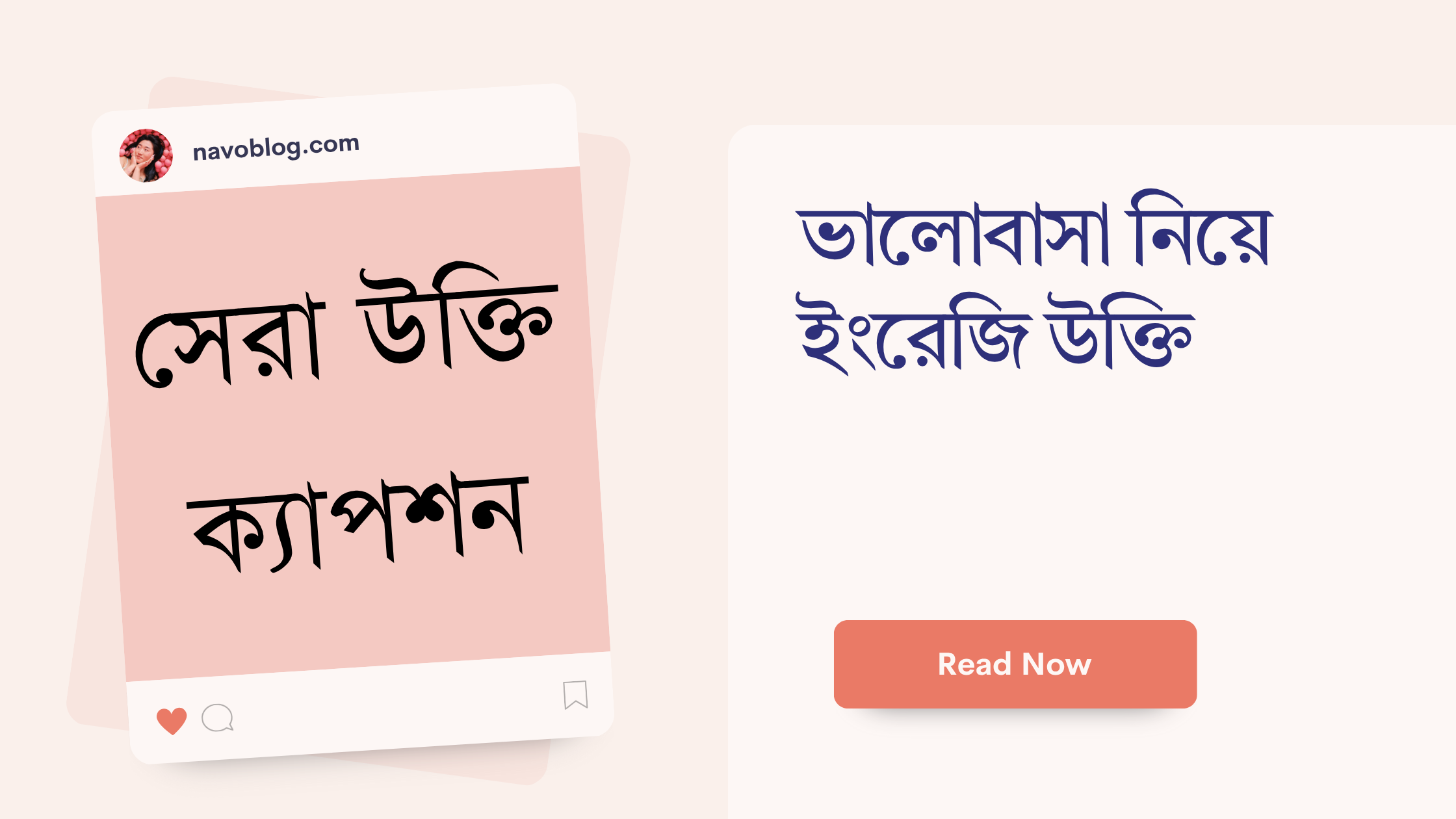 যারা ফেসবুক পোস্ট বা ক্যাপশন লিখতে পছন্দ করেন, তাদের জন্য ভালোবাসা নিয়ে ইংরেজি উক্তি বিশেষভাবে কাজে আসে। এক কথায়, এগুলো আমাদের দৈনন্দিন জীবনের অনুভূতিকে সুন্দরভাবে সাজাতে সহায়তা করে। উক্তিগুলি পড়ে আমাদের মনকে শান্তি, প্রেরণা এবং সঠিক দৃষ্টিভঙ্গি পাওয়া যায়।